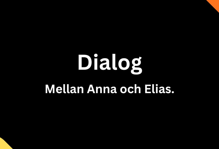 Elias: Visst är det så Anna. Nu kommer vår lunch in. Det ska bli gott med lunch nu. Vi behöver det båda två. Annars orkar vi inte med shoppingen. Det finns så många butiker att välja mellan.