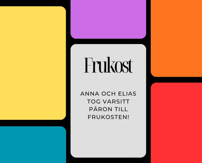 Elias: Anna. Intressant sammanträffande att det serveras inlagt päron i sockerlag med tanke på att vi fick päron till frukosten på hotellet. Päron och annan frukt är bra för hälsan. Sockerlaget är mindre bra för hälsan.