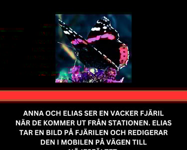 Elias: Precis Anna. Nu får vi skynda oss vidare så att vi hinner handla det vi ska innan bussen går hem. Vi får inte fastna här vid skärmen. Dess interaktiva innehåll är verkligen lockande.